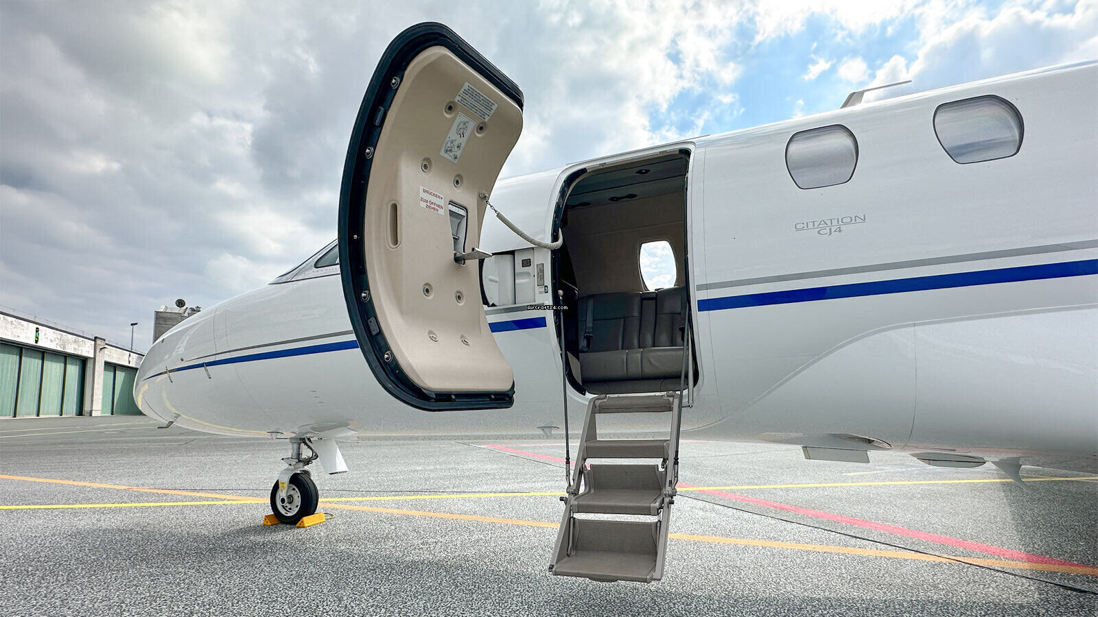 | Description | | Type: | Jet | | Marque: | Cessna | | Modèle: | Citation Jet 4 | | Millésime: | 2013 | | Immatriculation: | D-CWIT | | Numéro de série: | 525C-0124 | | Emplacement: | Allemagne | | Heures totales cellule (TTAF): | 4650 h | | Prix: | US$ 6,250,000 (~ CAD 8,500,192) | | Nombre de passagers: | 9 | | Atterrissages: | 4100 |