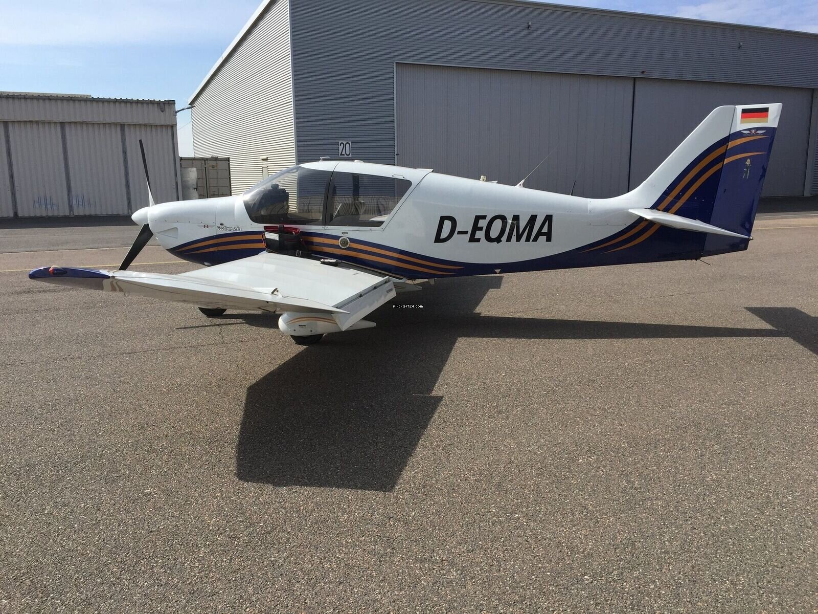 | Description | | Type: | Monomoteur | | Marque: | Robin | | Modèle: | DR 400 140B | | Millésime: | 2007 | | Immatriculation: | D EQMA | | Numéro de série: | 2628 | | Attributs: | Toujours sous hangar | | Visite annuelle: | 1/2026 | | Emplacement: | Allemagne, Mannheim, EDFM | | Heures totales cellule (TTAF): | 1951 h | | Prix: | € 149,000 (~ CAD 234,317) | | Nombre de passagers: | 4 | | Atterrissages: | 2861 |