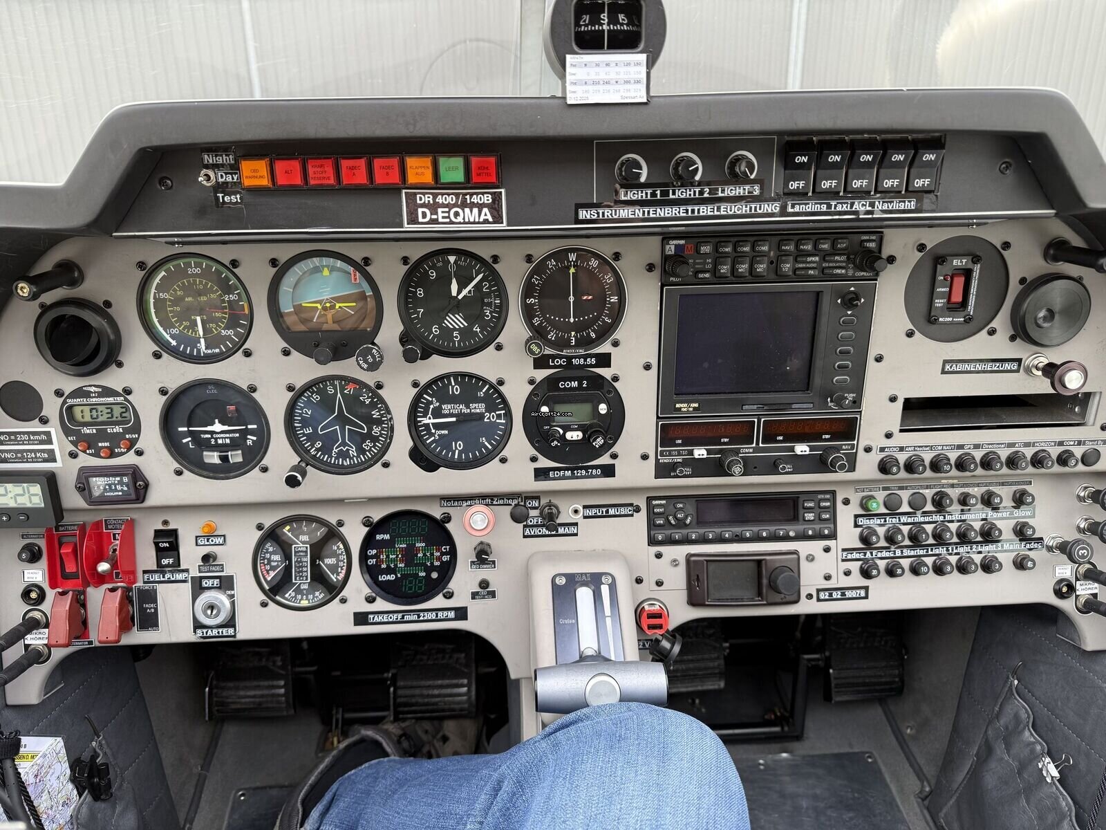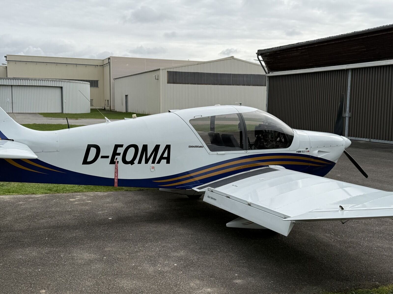 | Description | | Type: | Monomoteur | | Marque: | Robin | | Modèle: | DR 400 140B | | Millésime: | 2007 | | Immatriculation: | D EQMA | | Numéro de série: | 2628 | | Attributs: | Toujours sous hangar | | Visite annuelle: | 1/2026 | | Emplacement: | Allemagne, Mannheim, EDFM | | Heures totales cellule (TTAF): | 1965 h | | Prix: | € 139,900 (~ CAD 224,260) | | Nombre de passagers: | 4 | | Atterrissages: | 2870 |